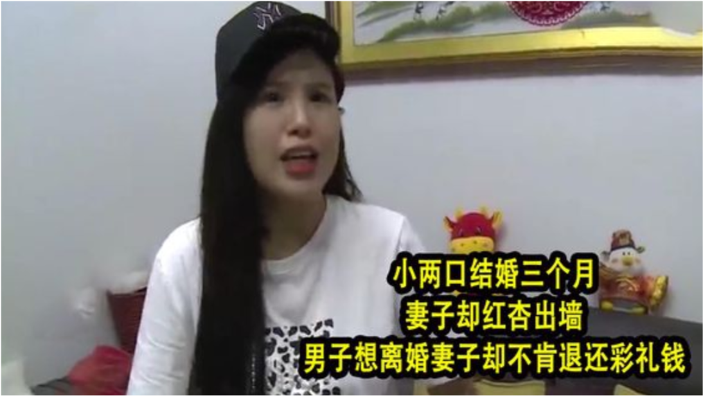 她撑着伞站在校门口,妆容精致,眼眶微红,一副楚楚可怜的样子。